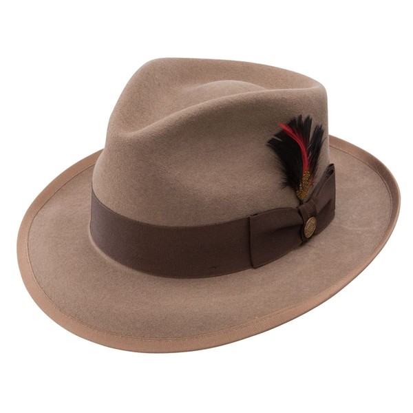 The Stetson 150th Anniversary Whippet Wool Felt Fedora is a new version of a favorite Stetson style- the Whippet is a popular 1940's style fedora with a 4 inch blocked teardrop crown and bound edge for a vintage look that is timeless and fashionable. This wool felt version is a 2 1/2 inch brim hat with a smooth finish and sturdy feel, trimmed with the same grosgrain ribbon hat band and round removable Stetson pin. Fully lined with a leather sweatband, this is a versatile look sure to last you a lifetime. Made in the USA.