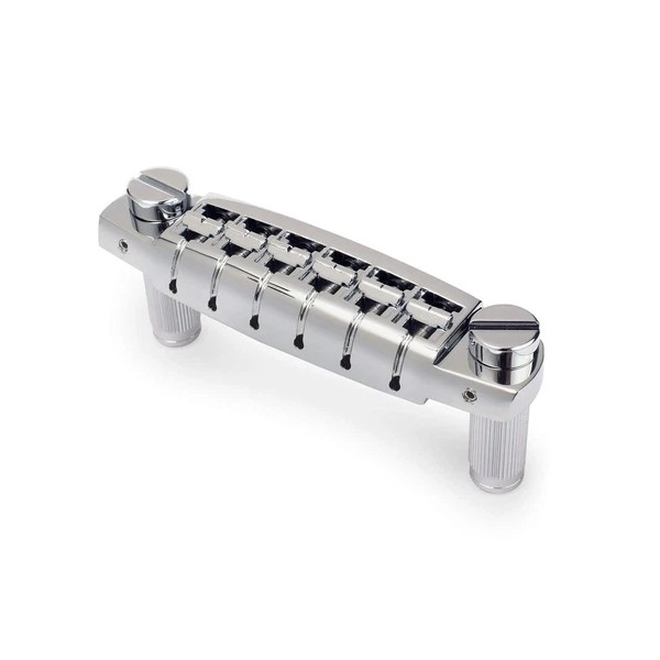 Golden Age Low-profile Wraparound Bridge with Metric Studs A sleek, low profile wraparound bridge for any neck angle We designed this ultra-low profile adjustable wraparound bridge for lower action and a super comfortable feel. Wraparound bridges are full of sustain and sound great, but they’re not all created equal. Without adjustable saddles, you’ll struggle to get the guitar perfectly intonated. And on many set neck guitars, you can’t get most wraparound bridges low enough for a comfortable action. Redesigned for better playability To get lower action, we made this bridge very low profile. It fits perfectly with the shallow neck angles on Les Paul Juniors and Specials, and other set neck guitars like PRS. You’ll no longer have to bottom out the bridge and still struggle with high action. Next we polished all of the edges and saddles, making the bridge incredibly smooth and comfortable under your palm. The saddles have a wide intonation range so you can finally play in tune up and down the neck. You have the option of notched or unnotched saddles. Cut your own string slots for a custom spacing or play instantly with pre-notched saddles. High quality studs and bushings are included. We took extra care to make sure the bushings fit tight to minimize "lean". The studs feature M8 x 1.25 threads that fit countless guitars from Epiphone, Schecter, ESP, and more. Also available with standard SAE studs. Lower your action and play in tune: Low profile for low action Works with guitars with shallow neck angles Available with notched or unnotched saddles Wide intonation range to play in tune String spread 2-1/16"(52.50mm) Saddle radius 12"(305mm) Post spacing 3-1/4"(81.80mm) Post threads M8 x 1.25 Includes: Height adjustable studs High quality knurled bushings Intonation screws Allen wrench About bridge & tailpiece measurements String spread is the distance between the centers of the outer strings on a bridge or tailpiece. Saddle radius determines the arc formed by all the individual saddle heights, and is similar to the measurement of a fretboard. Stud/post spacing is the distance between the centers of the mounting posts of a bridge or 'stop' tailpiece. Tip: Slotting Tune-o-matic style saddlesNut slotting files work great for metal saddles. Choose your file size as you would when slotting a nut: use the same gauge as the string, or a few thousandths larger. After filing to the desired depth, we suggest polishing the slot with Mitchell's Abrasive Cord to remove file marks and burrs.