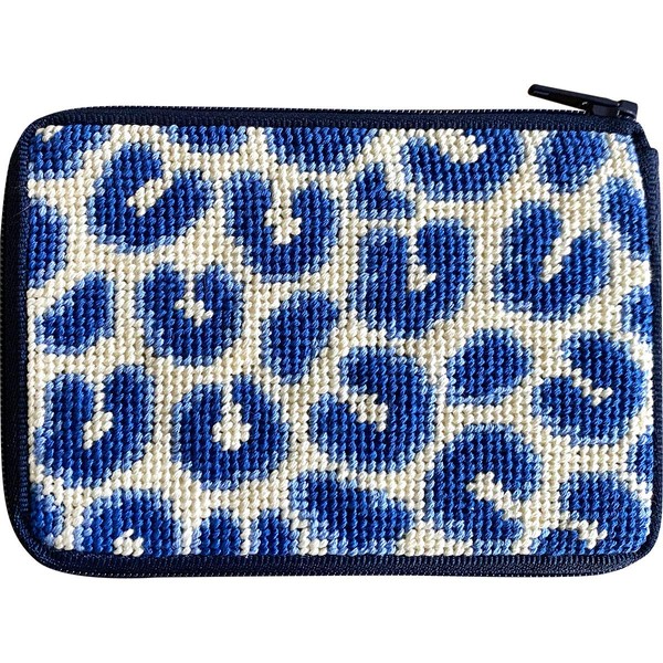 Stitch & Zip Needlepoint Coin Purse Kit- Navy Leopard