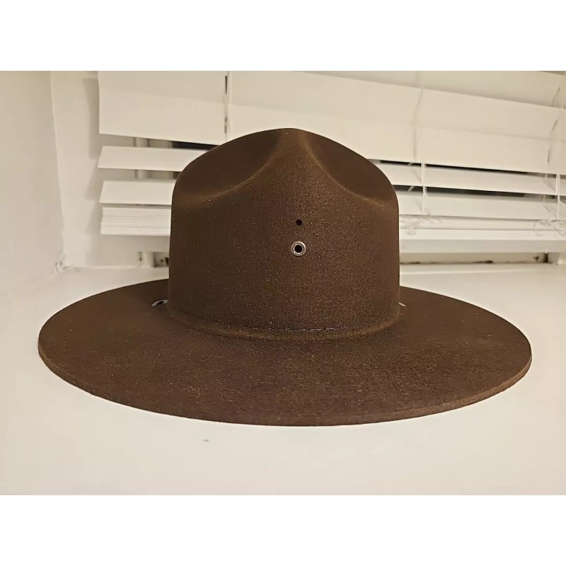 This product is a signed uniform hat made by Stratton. It is designed for police officers, troopers, sheriffs, and rangers. The hat is made of brown felt and is a size 7 1/4. It is manufactured in the United States.