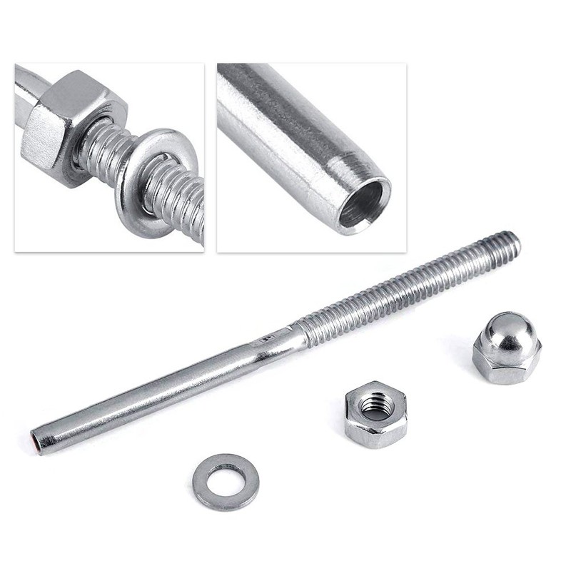 **Upgrade your home and garden** You can make railings for your garden, stair, and aisle by using threaded terminal studs. **Specification:** Material: Stainless Apply: For 3/16 inch Cable Wire Rope **Package Include:** 12 * Threaded Terminal Studs