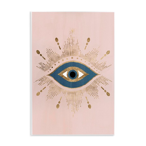 Stupell Industries Evil Eye Glam Boho Pattern Bold Blue Pink, Designed by Grace Popp Wall Plaque, 10 x 15