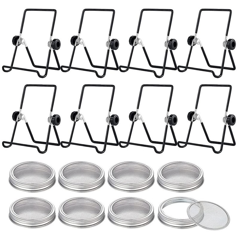 - Nice Combination: you will get 8 sets of jar sprouting kit in the package in total, each set has 1 piece stainless steel sprouting lid with movable filter cover, and 1 piece of bracket, namely 16 pieces in total, considerate match with your germinated jar, meeting your various growing needs in your