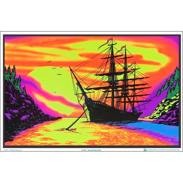 Sunset Bay Ship Laminated Blacklight Poster - 35.5" x 23.5"