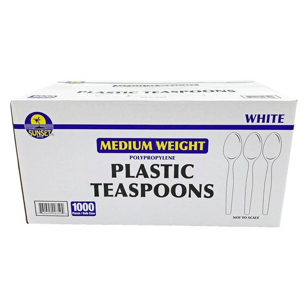 Sunset Medium Weight Bulk White Plastic Teaspoons, 1000 pieces