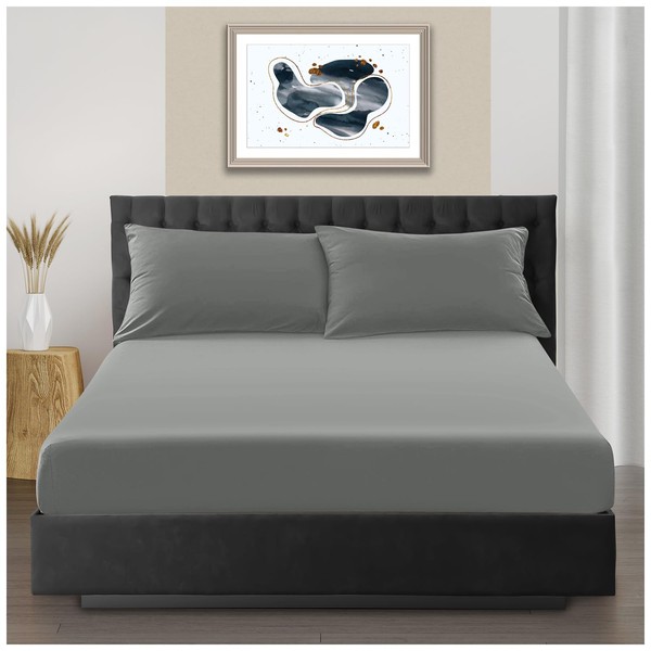 Super Soft King Size Fitted Sheets, Luxury Polyester 25 CM Deep Fitted Sheet, Easy Care & Warm Elasticated Corner Microfibre Bed Sheets, Charcoal