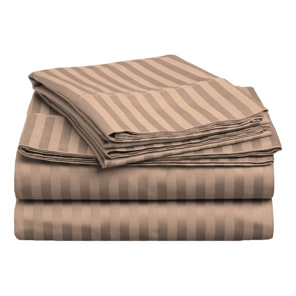 Superior 400 Thread Count Combed Cotton, 3-Piece Bed Sheet and Pillowcase Cover Set, Stripe, Twin XL - Taupe