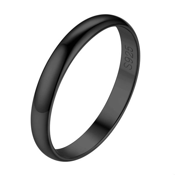 - BLACK RING-- 3mm Simple thin plain dome black plated engagement rings silver wedding band. Everyday rings and versatile as midi knuckle rings or stacking rings for index thumb finger.
