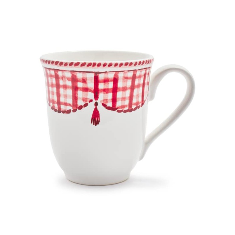 • A festive gingham motif makes this mug a delightful holiday gift. Made in Italy, our exclusive earthenware mug is safe for the dishwasher and microwave and coordinates with our Snowy Lane dinnerware collection.