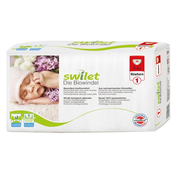• The 100% biodegradable bag contains 30 New Born size nappies