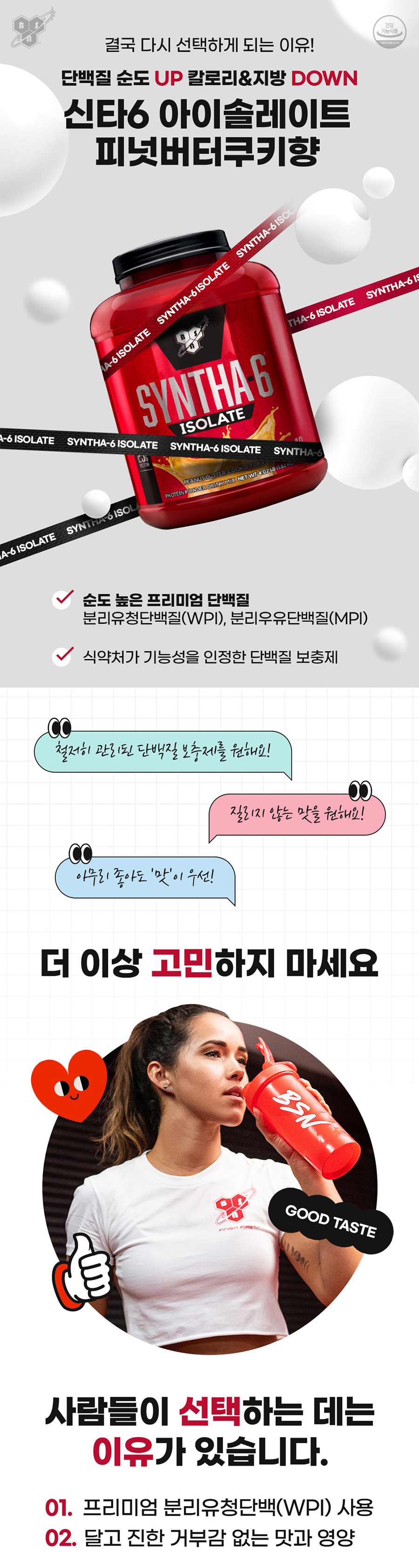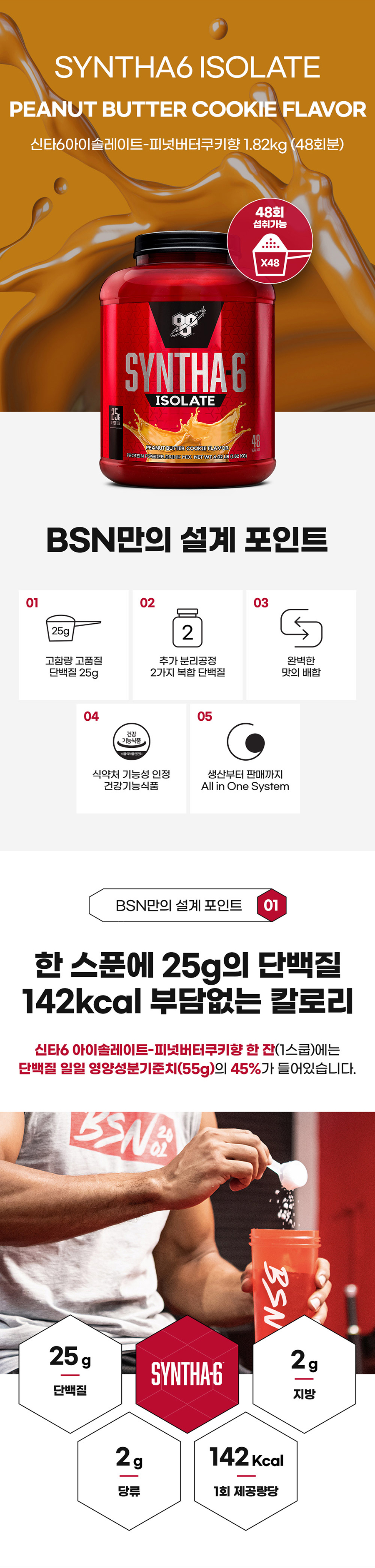 신타6 BSN 아이솔레이트 1.82kg 피넛버터 쿠키 복합단백질 분리유청단백질