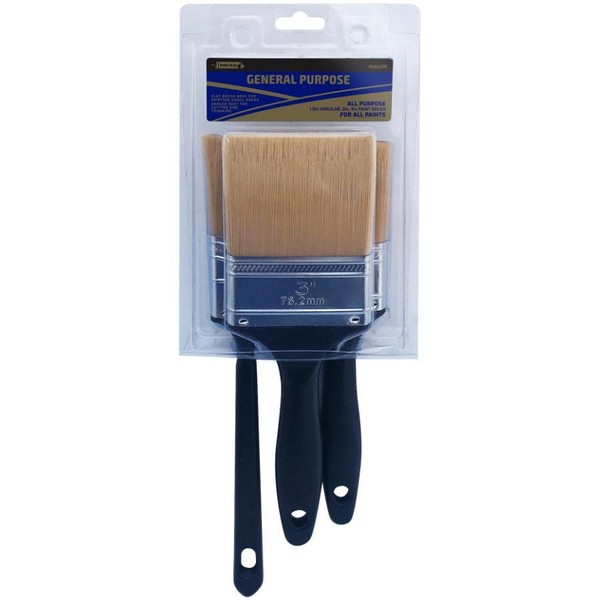 - Includes (1) 1-1/2" angular sash brush; (1) 2" flat brush and (1) 3" flat brush