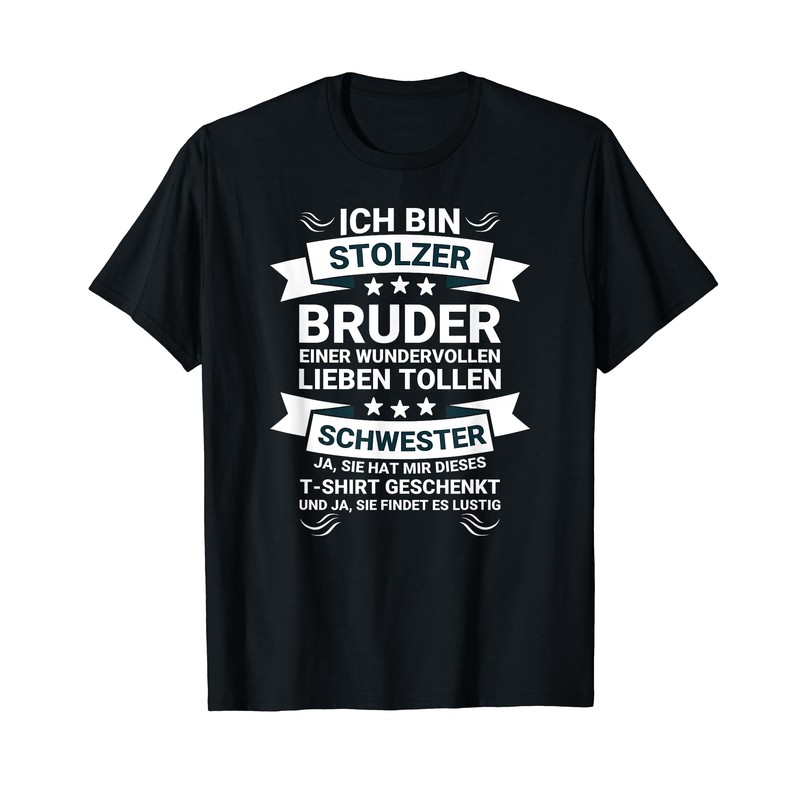 T-Shirt with German Text "Ich bin stolzer Bruder einer wundervollen lieben Schwester ", black
