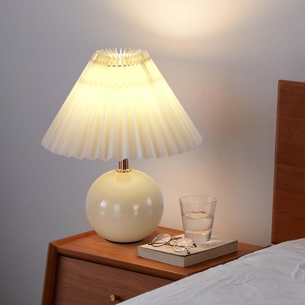 - 【Ceramic Table Light】This table lamp consists of a ceramic base and pleated lamp shade. The pleated fabric sades light up a soft light and the ceramic base adds a touch of elegance to your room. Useful as interior decoration even when you can't turn on the light. Perfect for living rooms where warm light diffuses at night