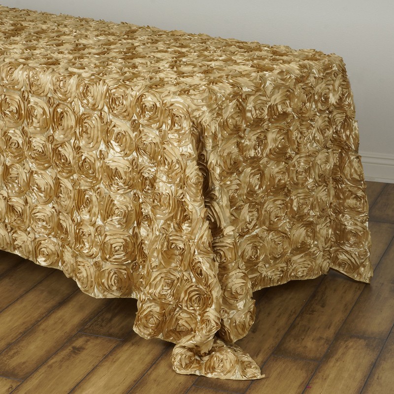 Tableclothsfactory Rosette/Rose Pattern Rectangle Tablecloth 90x132 - Champagne Tablecloth