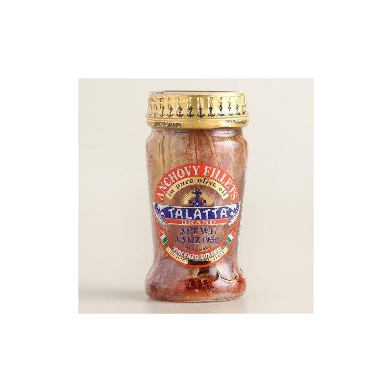 A must for authentic Caesar salad, Talatta Anchovy Fillets come from Sciacca in Sicily. Packed in olive oil and sea salt in glass jars.