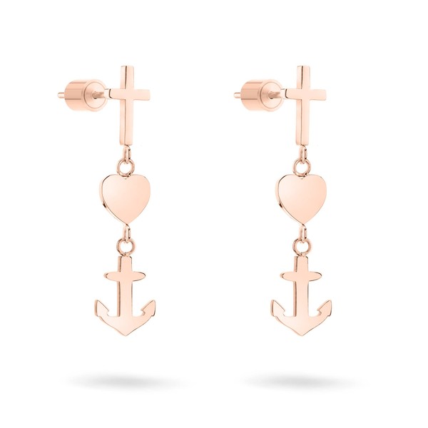 - Stainless steel IP rose gold earrings by Tamaris with symbolic faith, love, hope motifs