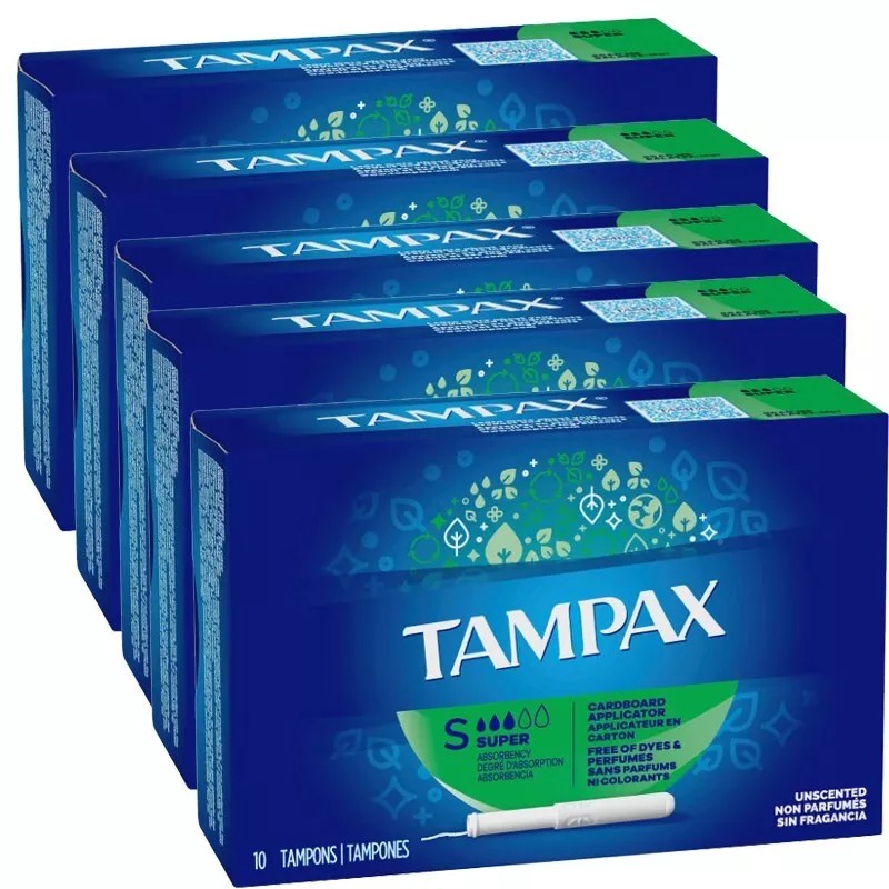 Tampax 5 x Tampax Tampons Super Absorbency, Unscented 10 Ct with Cardboard Applicator