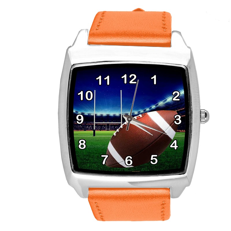 TAPORT Orange Leather Square Watch for Rugby Fans