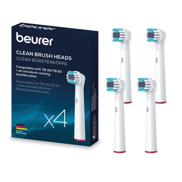 - Replacement set with 4 clean toothbrush heads - compatible with Beurer TB 30 / TB 50 + all standard rotary toothbrushes