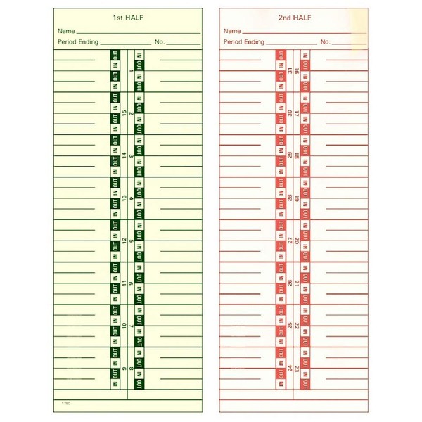 TCS (1000 ct) Side-Feed Monthly 1-31 Time Cards Amano Form 1790