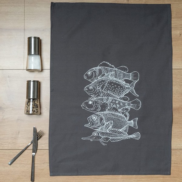 Tea Towel Grey 5 Fish White