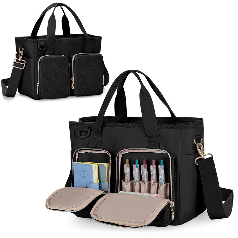Teamoy Storage Case for Diary Supplies, Large Capacity School Supplies Organizer with Removable Shoulder Strap for Books, iPad, Journal Supplies, Black
