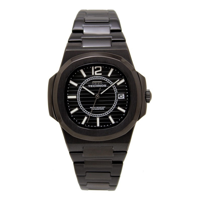 Technos Date T9B44BB Men's Watch, Black, Black, Bracelet Type