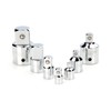 • Includes 4-pc. adapters: 1/4 in. drive (F) x 3/8 in. (M), 3/8 in. drive (F) x 1/2 in. (M), 1/2 in. drive (F) x 3/4 in. (M), 3/4 in. drive (F) x 1 in. (M); 3-pc. reducers: 3/8 in. drive (F) x 1/4 in. (M), 1/2 in. drive (F) x 3/8 in. (M), 3/4 in. drive (F) x 1/2 in. (M)