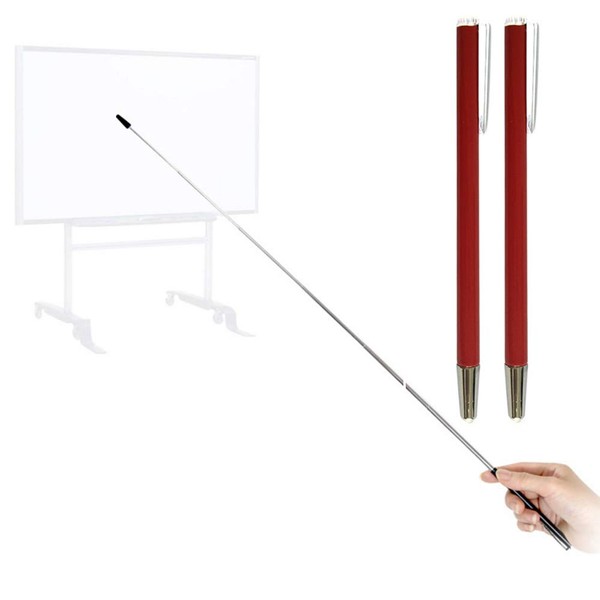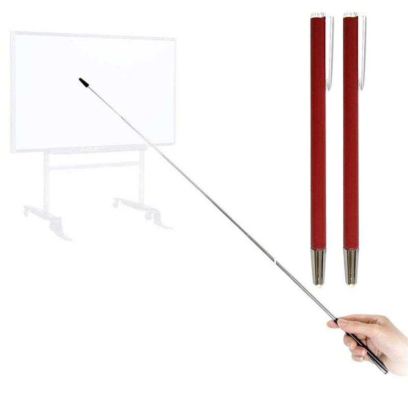 Telescopic Teachers Pointer,Teaching Pointer Stick for Classroom,Metal Hand Retractable Pointer Extended Length 25Inch, Handheld Presenter Whiteboard Pointer (Red-2pcs)