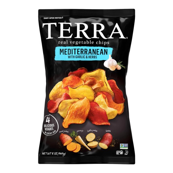4 delicious veggies in every bag. Over 3 decades ago, two New York Chefs came together and created a snack that not only tasted incredible but looked incredible too - and Terra chips were born. People were instantly hooked on the vibrant flavors and scrumptious crunch of the exceptional vegetable chip blend sourced with unique and diverse vegetables. Today, we continue to craft undeniably craveable and delicious Terra chips by seasoning and crisping real vegetables to perfection. Sweet Potato: (Boniato or Cuban sweet potato) light brown in color, yet darker than the Yuca. Boniato has been savored in the Carribean for centuries. Batata: (a distinct variety of the Ipomoea Batatas) A glorious late-summer orange. Parsnip: A member of the same family as carrots, fennel, parsley, celery, celeriac and chervil. Kettle Potato: Potatoes were first cultivated by the incas thousands of years ago. At Terra we use potato varieties like Atlantic and Snowden to make the perfect crisp and delicious kettle chips. Ruby Dipped Vegetables: Perhaps the most dramatic, these Terra chips are kissed with beet juice, resulting in their distinctive autumn red color.