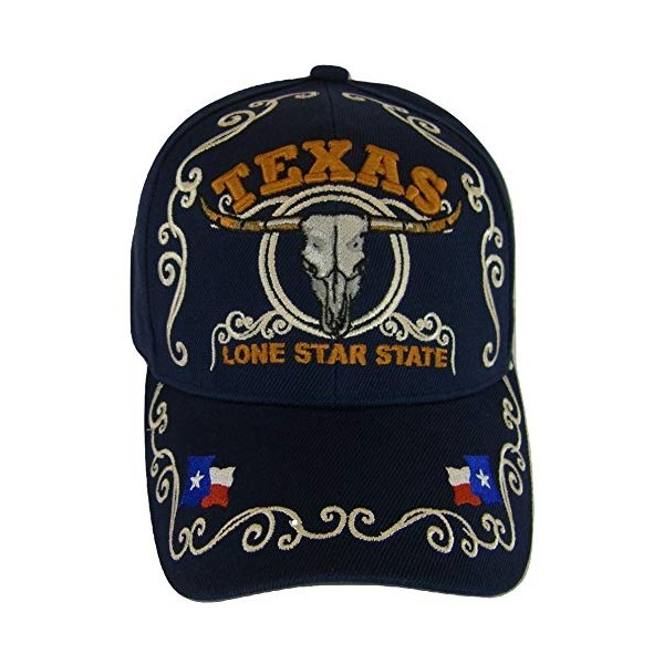Texas Lone Star State Adjustable Baseball Cap with Flag and Longhorn (Navy)
