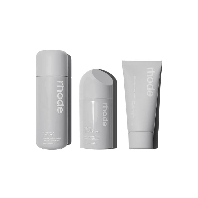 Three essential formulas that nourish your barrier to deliver glazed, glowy skin. This collection works together to prep, glaze, and restore your skin for a hydrated and happy barrier. Fits effortlessly into your morning and evening skincare routine and safe for all skin types. Includes 3 full size products: Glazing Milk, Peptide Glazing Fluid, Barrier Restore Cream