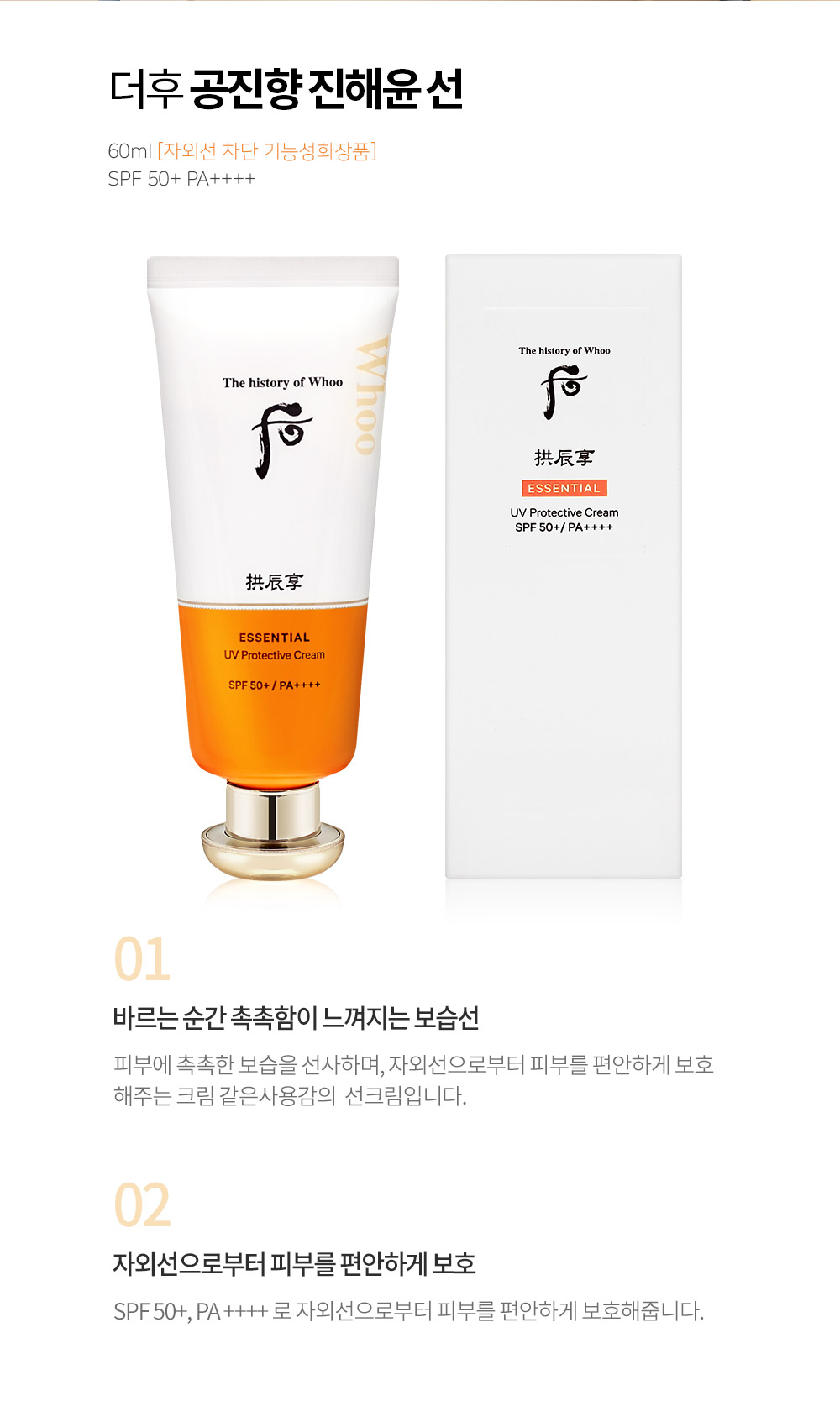 The Whoo Gongjinhyang Jinhaeyoon Sunscreen 60ml / Essential Moisturizing Sunscreen / 더후 공진향 진해윤 선크림 60ml 에센셜 보습 선크림