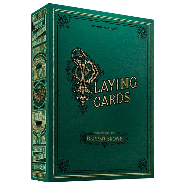 Over the past two years, these playing cards have been built with the passion and precision and art direction of Derren Brown. Gold and green similar to antique books, these cards are an elegant tool for magic, card game, collectors and more.