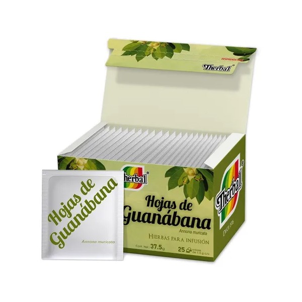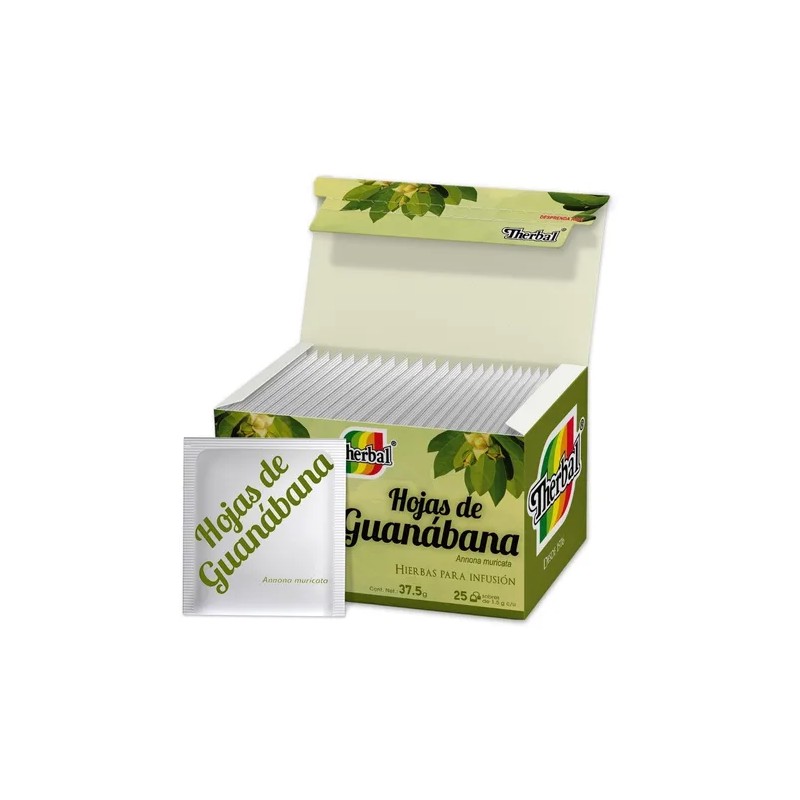 Ideal para comenzar el día con energía o para relajarse después de una larga jornada, el Té de Hojas de Guanabana Therbal es tu compañero perfecto. Su formato de té en saquitos es conveniente para llevar a cualquier lugar, ya sea al trabajo, en un viaje o simplemente para disfrutar en casa. Además, su empaque garantiza la frescura de cada sobre, manteniendo intactas las propiedades y el sabor hasta el momento de su uso.