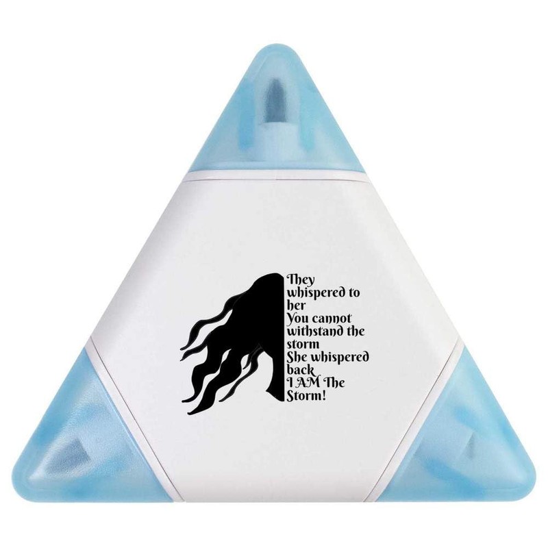 Our triangular compact multi tool is printed on one side with a unique design, making it a great gift for DIY lovers. This 3-in-1 tool set contains a tape measure and 2 different screwdriver attachments and each corner has a snap shut lid. One corner reveals a 1 meter tape measure, while the others hide two reversible screwdriver attachments, one larger and one smaller, both of which have a cross head on one end and a flat head on the other.