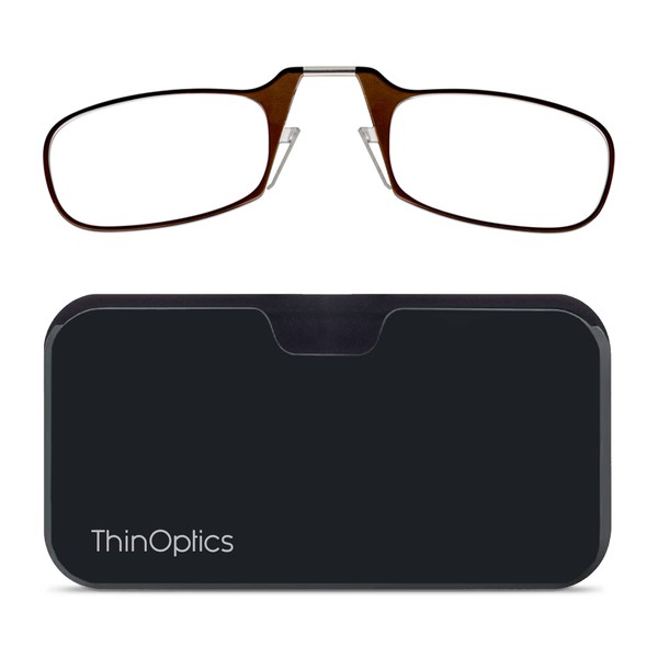 ThinOptics Universal Pod Rectangular Reading Glasses, Brown Frames/Black Case, 2 x + 2