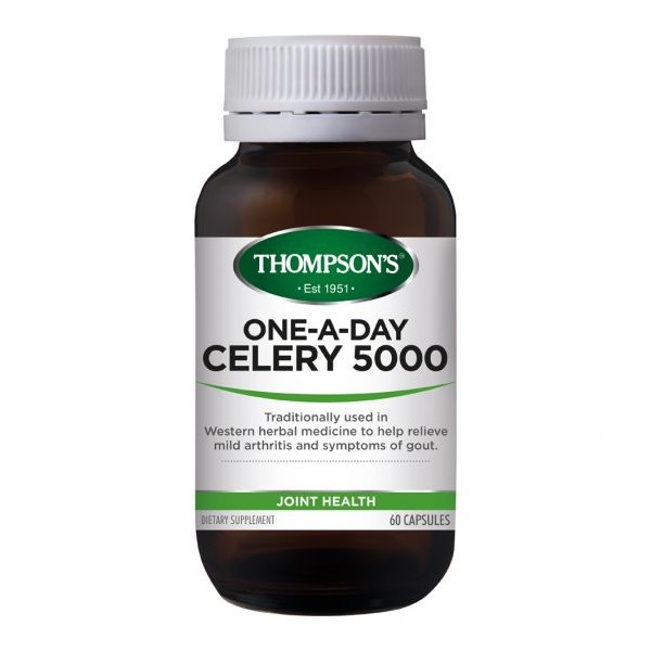 Thompson's One-A-Day Celery is formulated with Celery Seed which has traditionally been used in Western herbal medicine to help relieve mild arthritic symptoms such as mild joint inflammation. Celery Seed has also traditionally been used in Western herbal medicine to help relieve symptoms of gout and as a diuretic to assist normal fluid balance.
