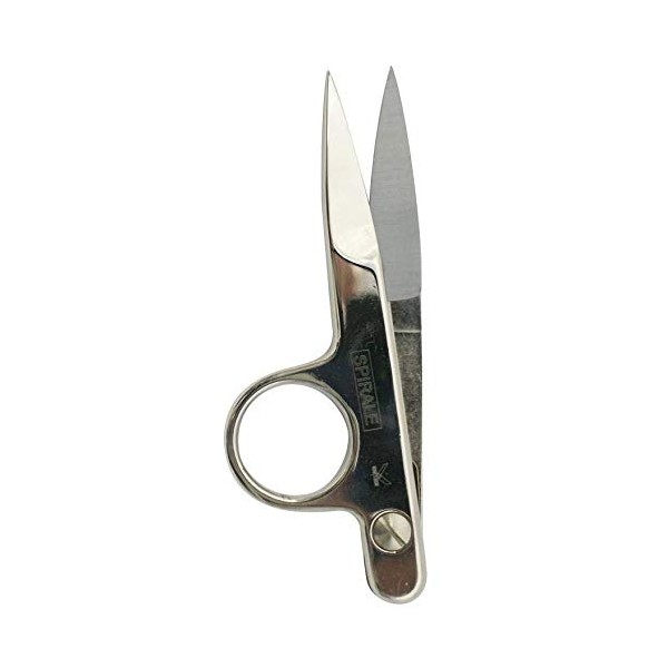 4-1/2in Thread snip with spring action and ball bearing for easy use. Finger ring for one handed use.