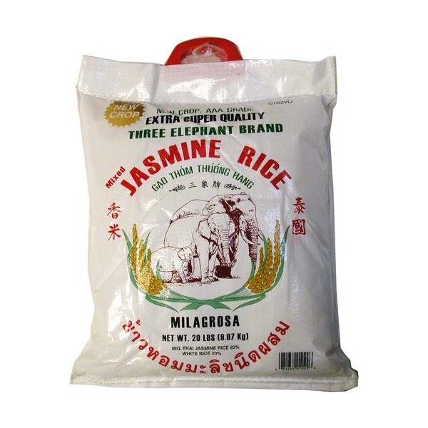 Three Elephants Thai Jasmine Rice, 20 Pound