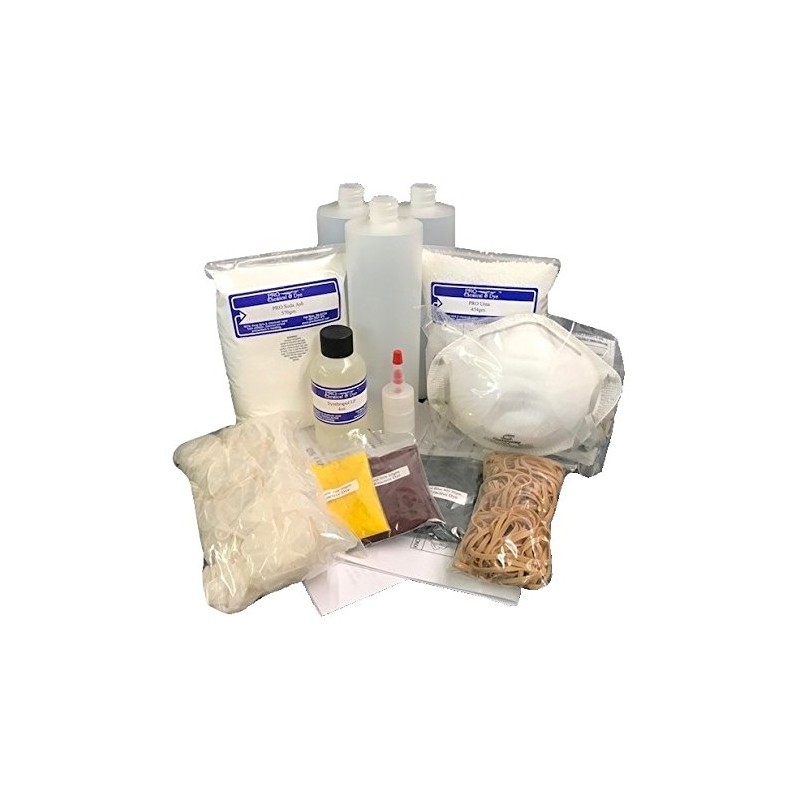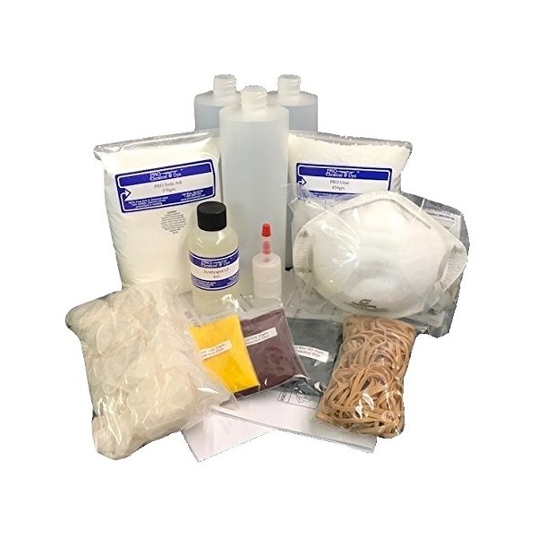 - PLEASE NOTE: DUE TO COVID19 & SHORTAGE OF MASKS, STYLES MAY VARY! Contains: 30 grams of Yellow, Fuchsia & Basic Blue, 570 grams of PRO Soda Ash, 454 grams of Urea, 4oz of Low Foam Synthrapol, 3 - 16oz bottles, approximately 100 rubber bands, Medium Vinyl gloves & MASK. We may substitute a color if unavailable.