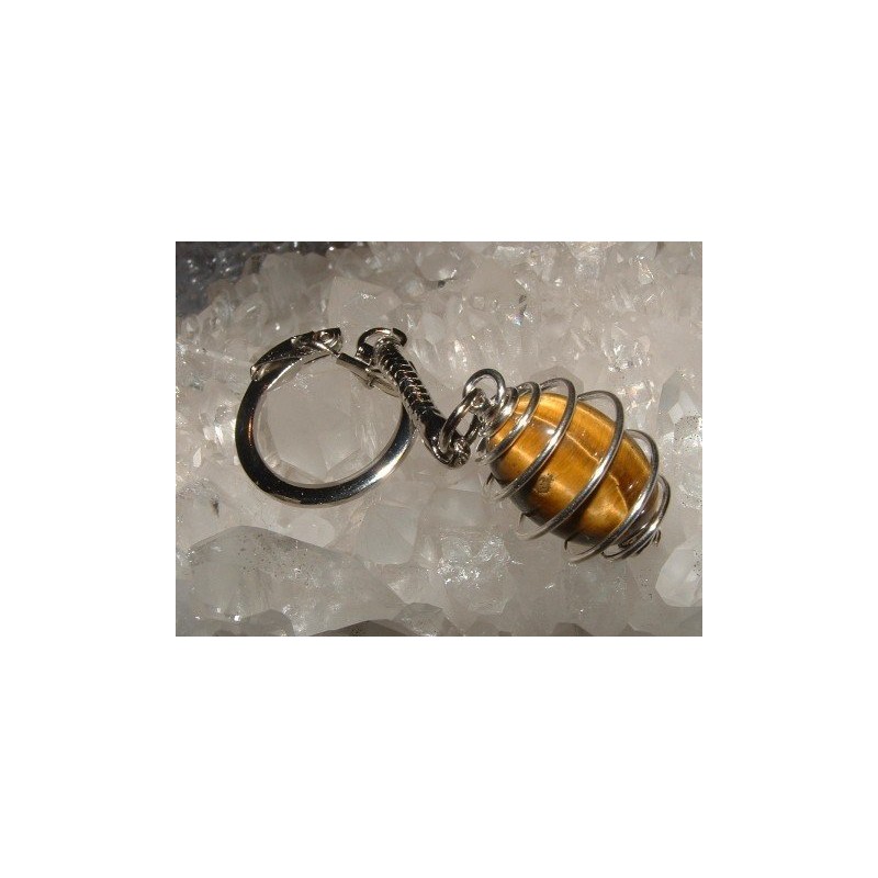 Tiger Eye Spiral Gemstone Crystal Cage Keyring