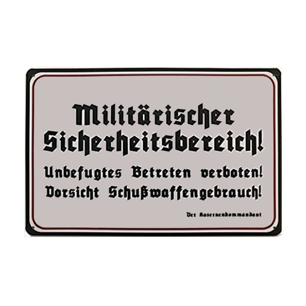 - Deko7 Tin sign 30 x 20 cm, warning sign, military security area, unauthorised entry prohibited. Use of firearms.