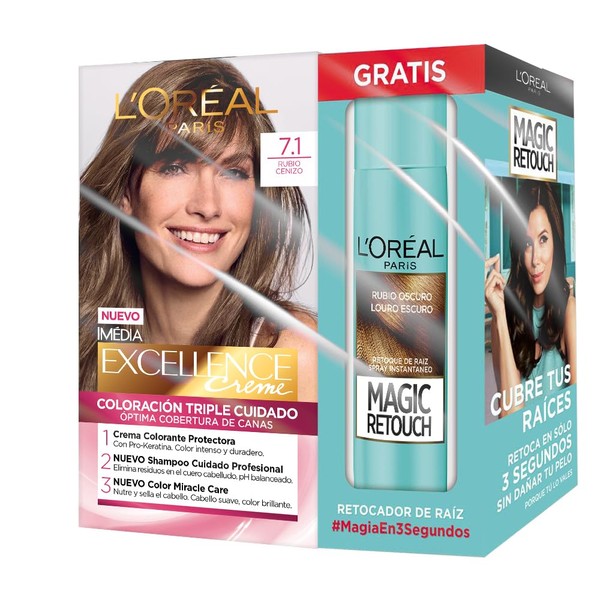 Tinte de Cabello Excellence Creme de L'Oréal Paris Tono 7.1 Rubio Cenizo + 1 Magic Retouch Rubio Oscuro