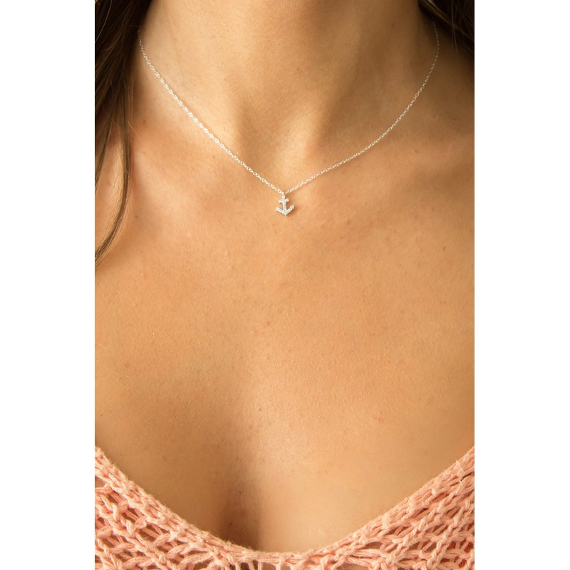 Tiny CZ Crystal Anchor Necklace