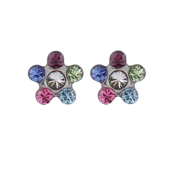 Tiny Tips Stud Earrings Tiffany Setting Hypoallergenic (stainless daisy rainbow)