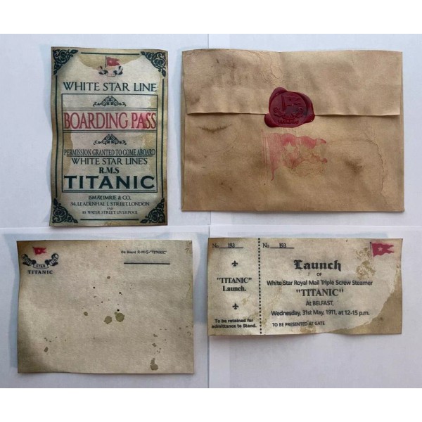 Titanic Launch Ticket, Boarding Pass, Postcard, and Envelope - White Star Line