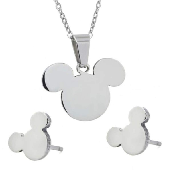 - Stainless Steel Mouse Jewelry Set: Earrings+Necklace Earrings approx 1/2 inch Pendant 1 inch Silver Plated chain 18 Inch