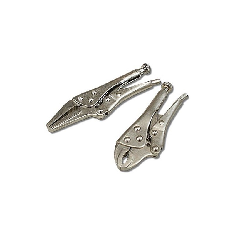 - Two piece mini locking pliers includes 4 inch Curved Jaw Locking Plier and 5 inch Long Nose Locking Plier.
